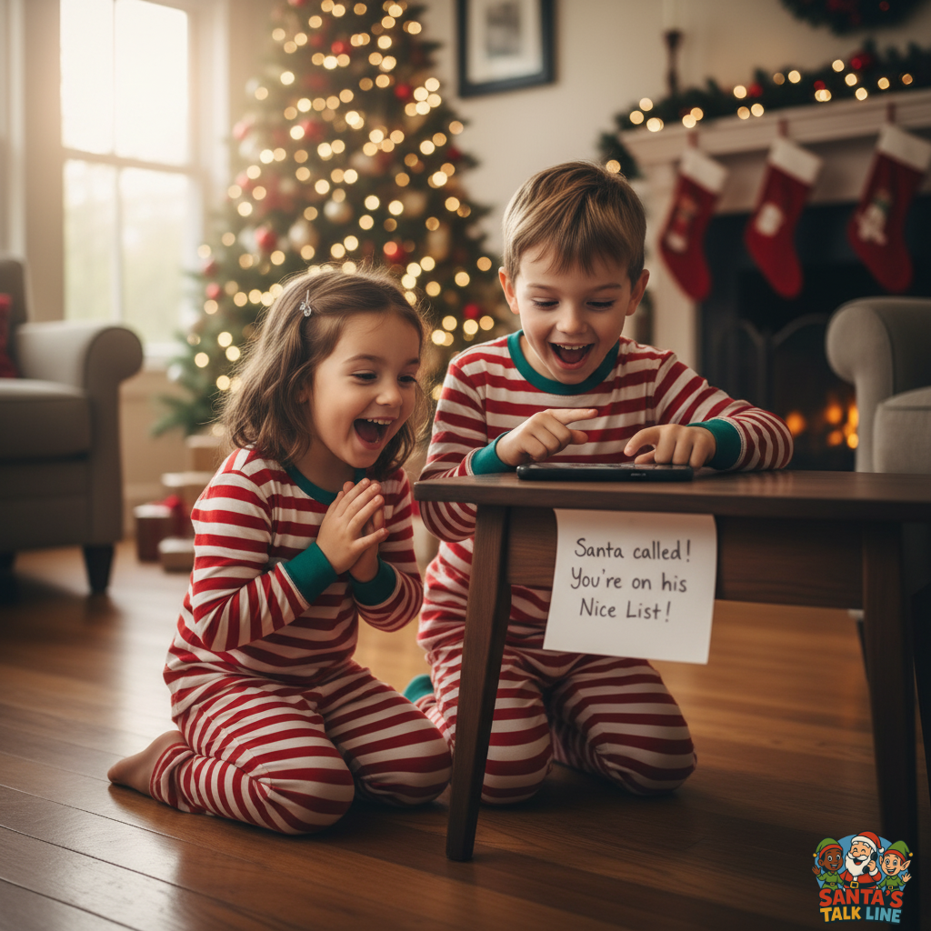 🎅 A warm, cheerful voice message from Santa that includes your child’s name and Christmas wishes. Delivered right to your phone.